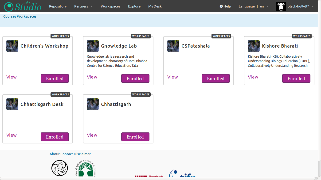 workspace listing: