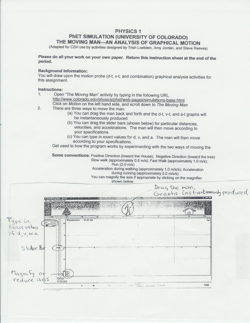| Description | I modified activities previously written so that it could be used after students completed the motion sensor computer activities |