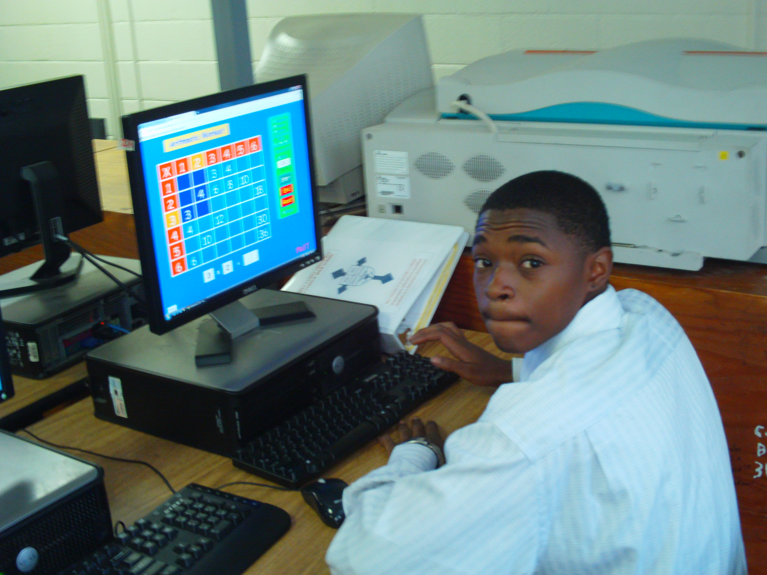 Kids participating in a timed Math review contest at Holy Family Cristo Rey